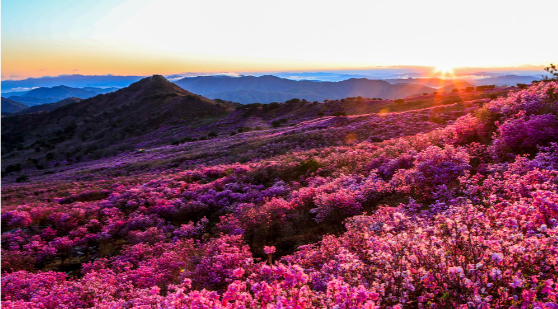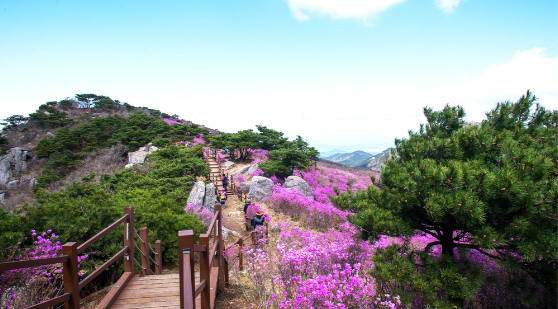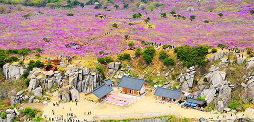 참꽃이 만개하는 봄날, 달성군의 대표 축제 <비슬산 참꽃문화제>가 2024년 4월 중 주말 양일간 개최됩니다. 비슬산 곳곳에서 유서 깊은 사찰과 문화유적들이 산재되어 있습니다. 천왕봉 정상에 올라 바라보는 능선은 수묵으로 그려놓은 듯 아름답습니다. 전망데크에서 아래를 내려다보면 낙동강 물줄기가 산지를 따라 굽이쳐 흐릅니다.