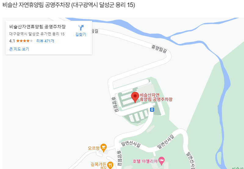 비슬산 유스호스텔 앞 주차장 (대구광역시 달성군 유가읍 일연선사길 10)