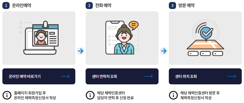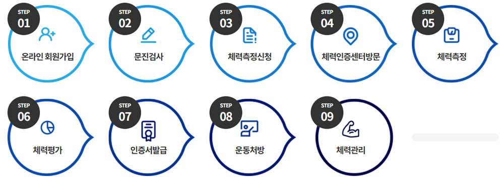- 홈페이지에서 '체력인증센터 찾기'에서 가까운 위치에 센터가 있는지 확인할 수 있습니다.