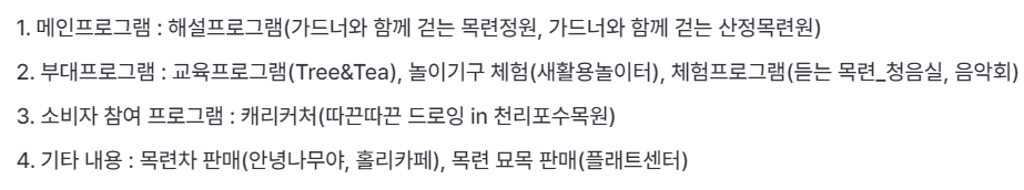 우대요금 8,000원, 특별우대 6,000원 (네이버예약 시 1,000원 할인) - 프로그램 : 가드너와 함께 걷는 목련정원 40,000원, 가드너와 함께 걷는 산정목