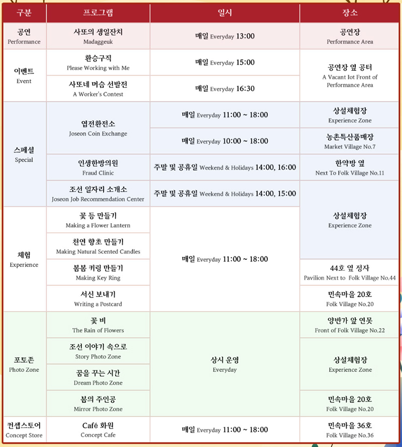 - 요금 : 입장료 무료(체험비 별도)