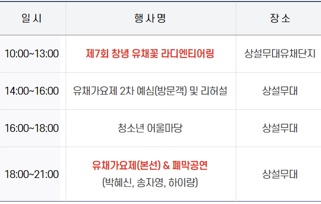 - 남지읍 낙동강 유채단지(남지유채단지) 및 남지체육공원 일원