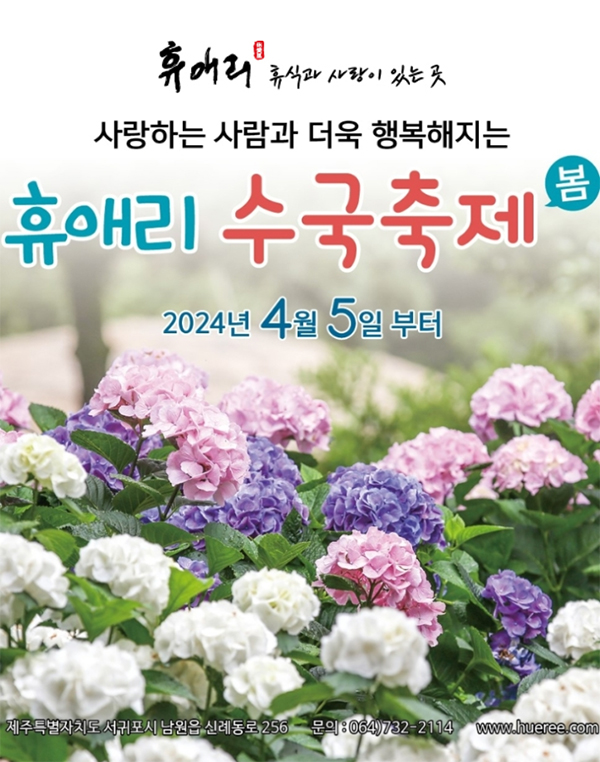 반갑게도 휴애리 수국축제는 이름 봄부터 시작됩니다. 지난겨울 온실에서 정성으로 키운 대규모 화분 수국이 온실을 비롯 공원 곳곳 전시되며, 여름을 맞아 노지에서 피어나는 유럽수국, 산수국까지 만나볼 수 있는 선물 같은 축제입니다. 따뜻한 봄부터 시원한 바람 살랑이는 초가을까지 휴애리 수국과 함께 아름다운 추억 만들어보세요.