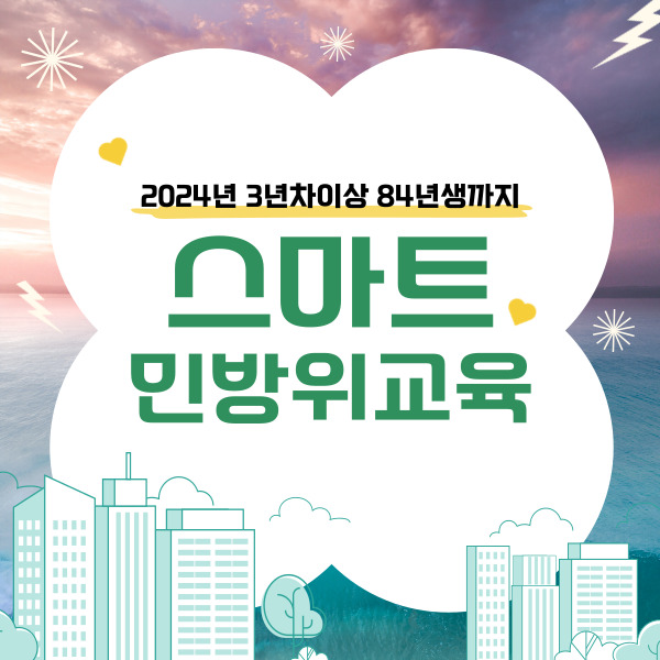 2024년 민방위 교육이 시작되었습니다. 미수료 시 과태료가 부과된다고 합니다. 교육기간 내에 언제 어디서든 24시간 시청이 가능하시니 바쁘시더라도 미루지 마시고 꼭 수료하시기 바랍니다.